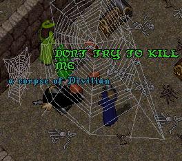 ![]() This prick introduced himself by trying to npk my bard. He couldn't kill me, but since I had no fighting skills on that char - Allusion kindly finished him off when he chased me into the black demon spawn area. I told him after our first encounter that I would kill him every time I see him. |