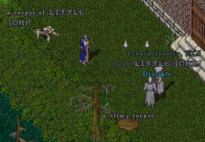 I saw a guy run by named LITTLE JOHN. I was on as my murderer character at the time. Blink and I had a pretty unsuccessful run to Deceit and Shame earlier, so I was still in a killing mood.
