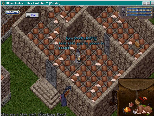 So, I'm sitting there naked with 50 of each reg with these 2 Japanese archers. I'm feeling pretty intimidated and so I hide, not being a thief I couldn't steal their key. I check the rest of the chest but no luck, they are all over 400 stones and are all locked. Well, Dart icq's me saying he is coming back and I answer the icq. I return to the game to see me half dead due to a poison and fire field and 2 archers standing their with hvy x bows at the ready. "SHIT SHIT SHIT" I think as I yell Corp Por and go down fighting. I sat there in ghost mode not understanding a word the japs are saying, but I was repeatedly referred to as a "Gaijin" does anyone know what this means? Every Japanese player I seem to annoy calls me this...